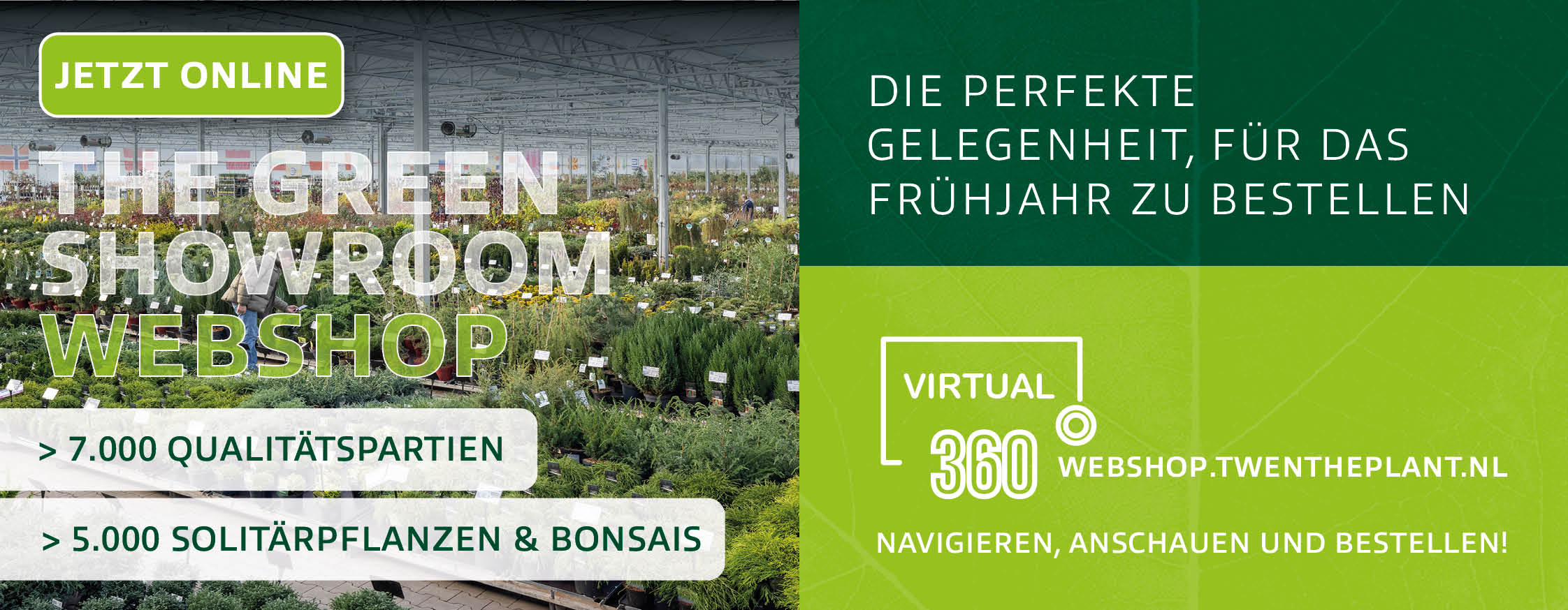 Vom 3. November 2025 bis 6. Februar 2026 organisiert Twenthe Plant "The Green Showroom". In unserem Verkaufsgewächshaus, das nicht weniger als 1 Hektar groß ist, warten mehr als 7.000 Musterpartien pro Produktgruppe und in alphabetischer Reihenfolge auf Sie.